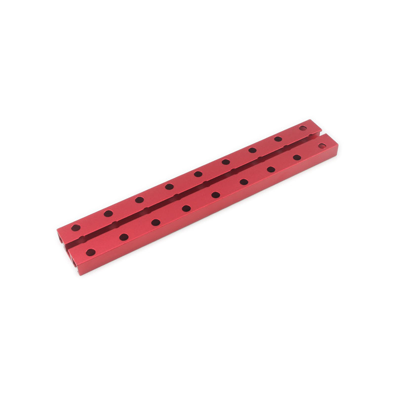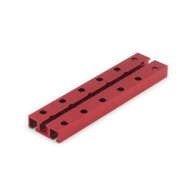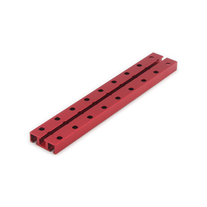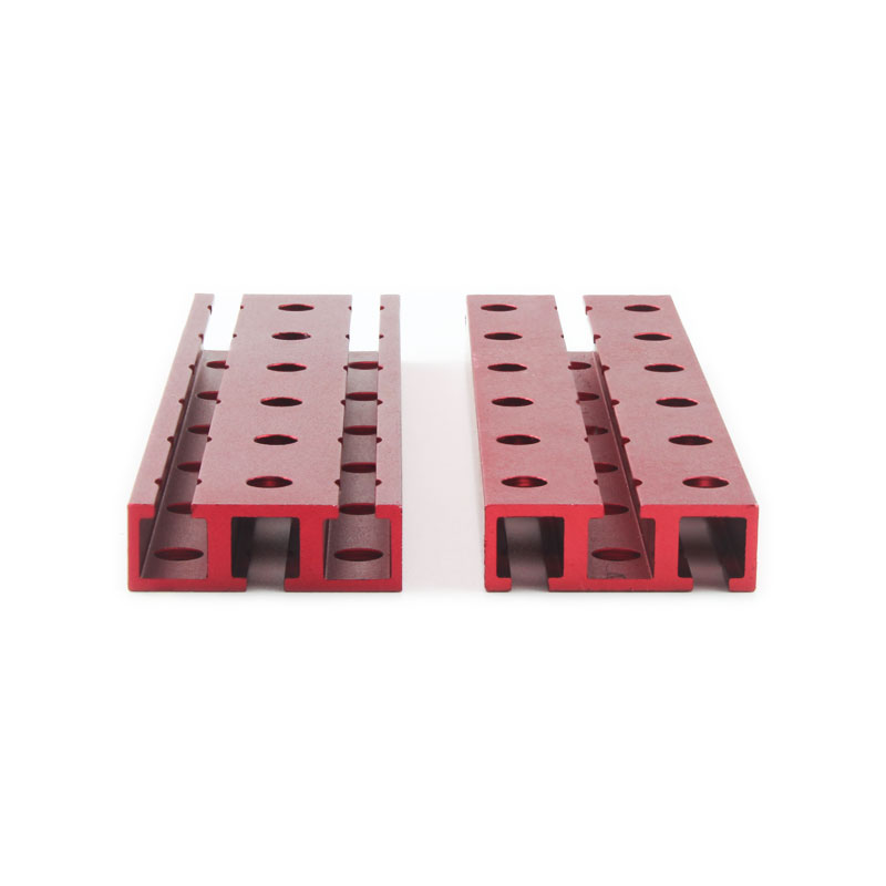 金属构建模块系列之双孔梁,也叫双排梁。采用铝合金6061-T5挤压型材,经CNC加工,喷砂或者拉丝处理,然后表面进行阳极氧化处理,颜色为红色或者蓝色,美观,耐腐蚀,不生锈,耐刮花,易清洁。