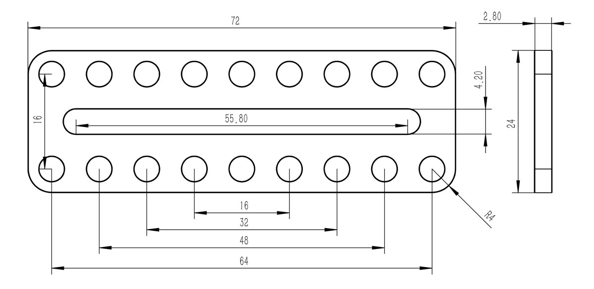 连接片表面设有间距8mm的D4.1安装孔阵列,可与各类梁结构配合使用,适用于搭建更大或更复杂的机械框架结构。无论是编程教育中的机器人底盘、智能家居模型,还是工程课程的机械臂项目,都能通过它快速实现模块化组装,帮助用户降低搭建难度,专注于创意实现。