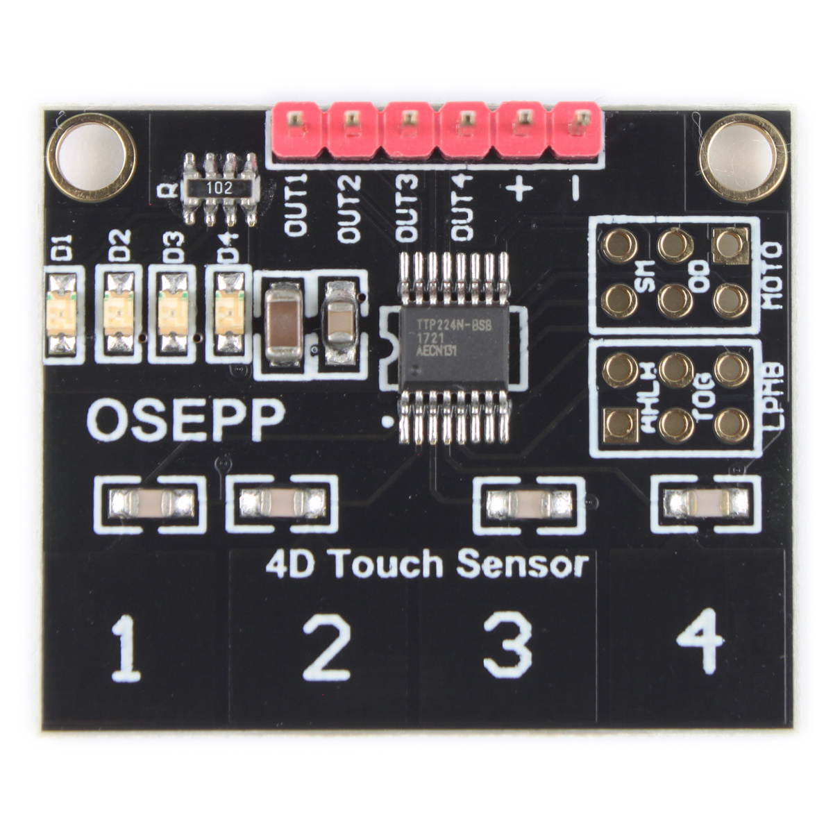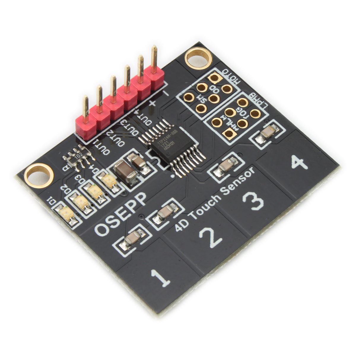 • 板载TTP224电容式四键触摸感应IC和LED指示灯