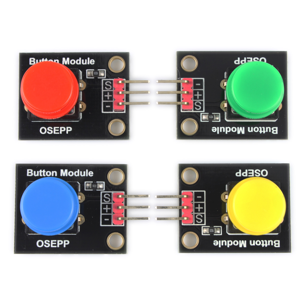 该模块是最简单的按键模块,包括红色、绿色、蓝色和黄色按键模块。日常应用于门铃、台灯、空调遥控器、按摩浴缸、电梯、消防报警等场景。将按键模块添加到您的项目中以实现基本的交互功能。