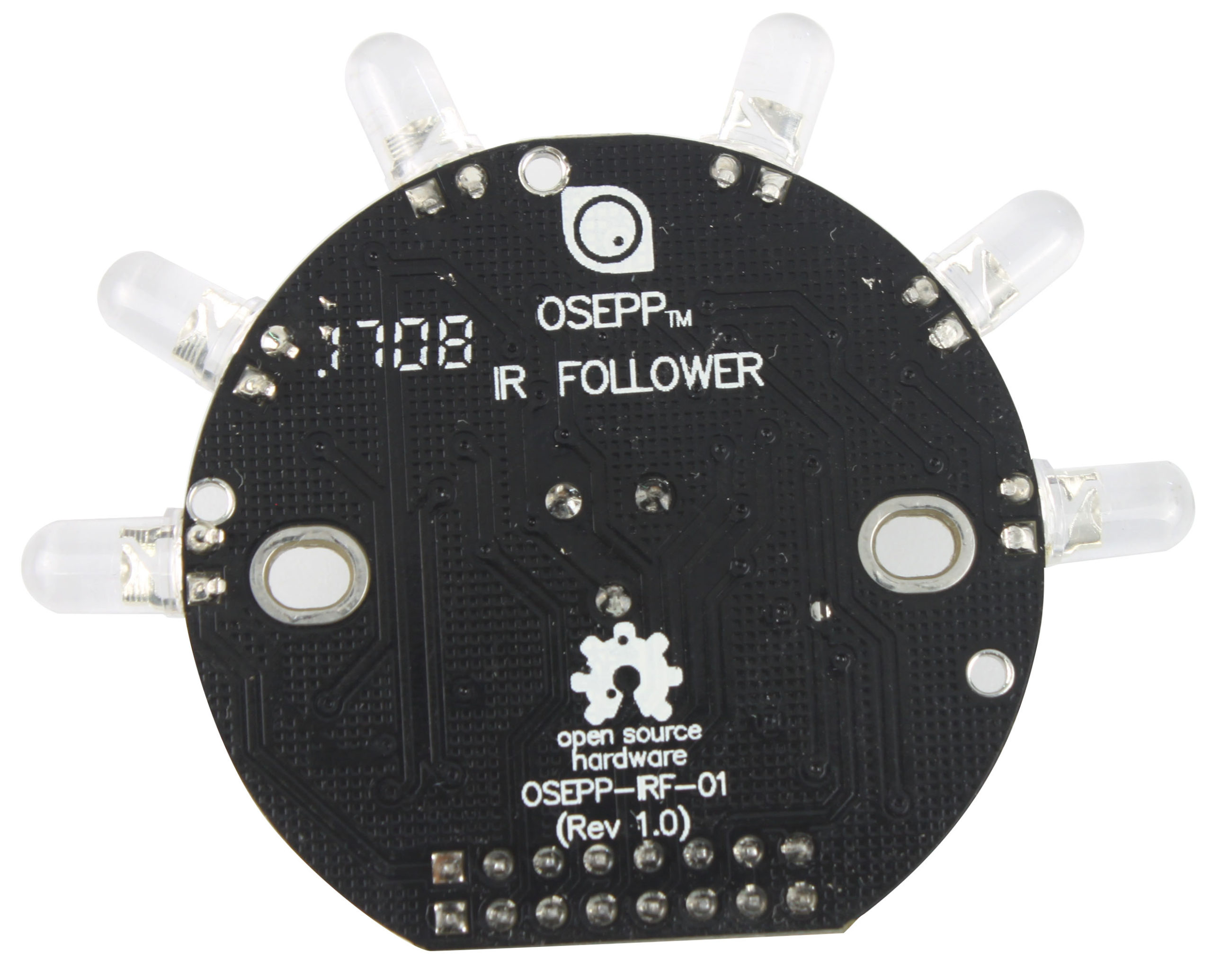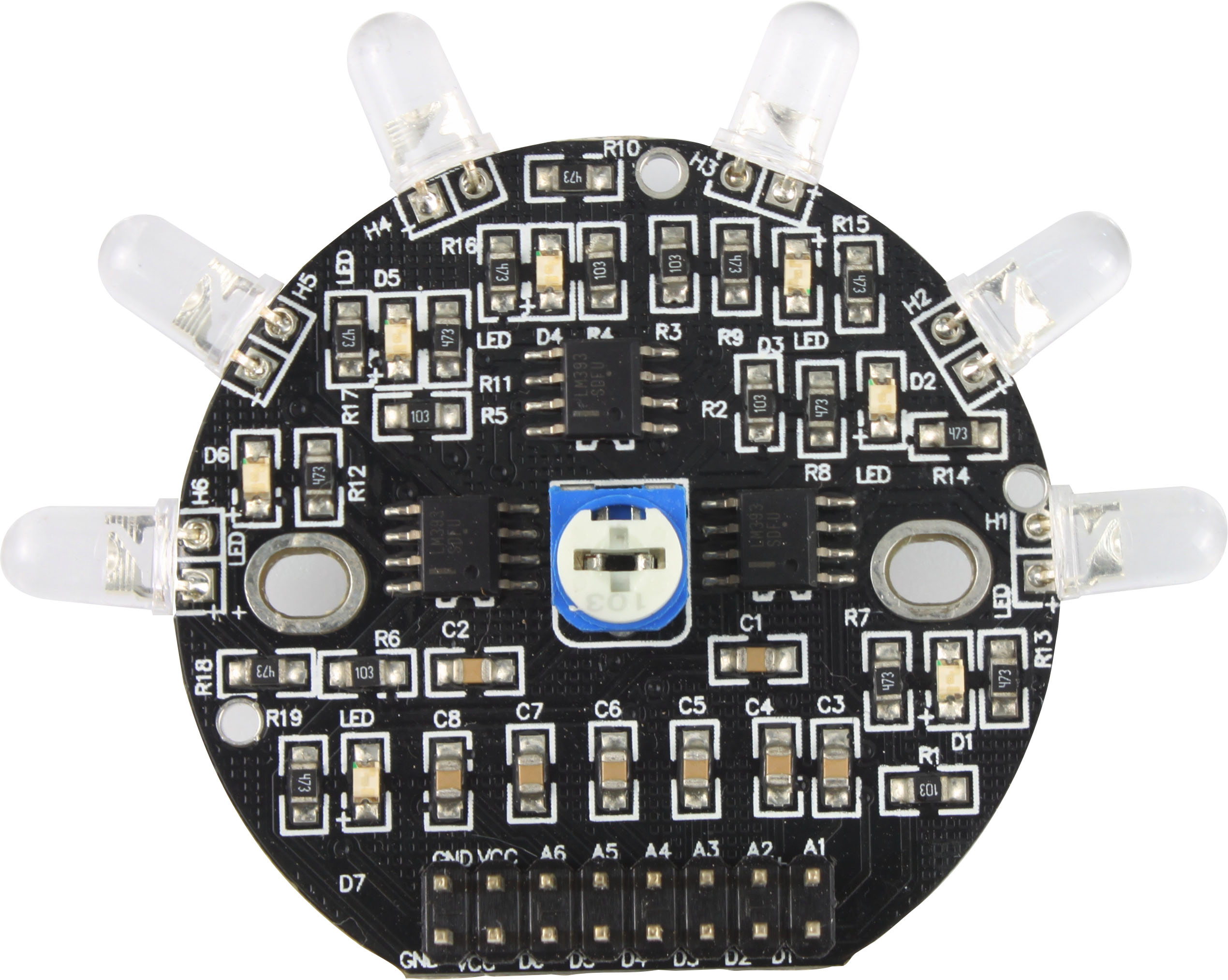 OSEPP光线传感器阵列由6个光敏二极管组成,可用于探测光线强度,通常用于追光小车、机器人。