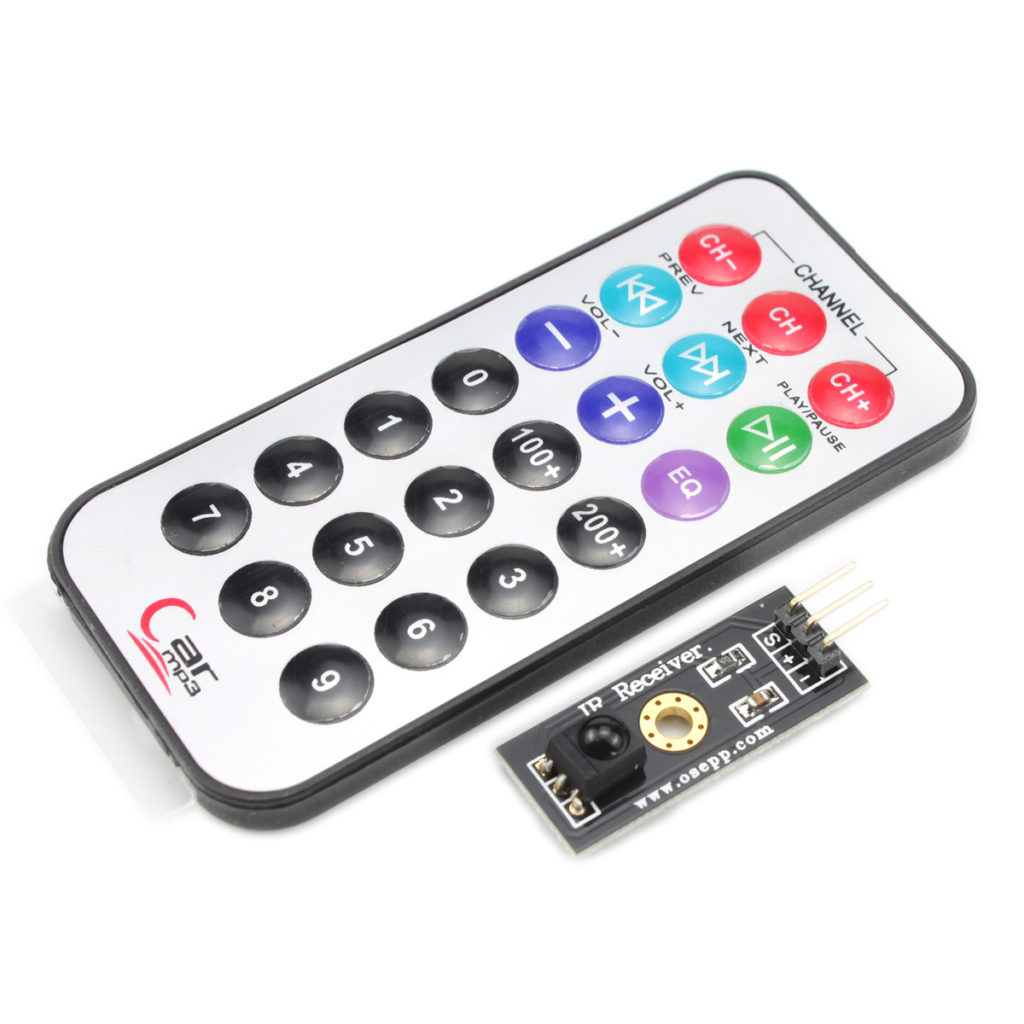 红外接收模块接收来自红外遥控器的信号,解码后得到按键信息。是目前使用最广泛的一种通信和遥控手段,具备体积小、功耗低、功能强等优点。如各种家用电器、音响设备、空调机、机器人动作控制、小车控制以及其它智能控制。