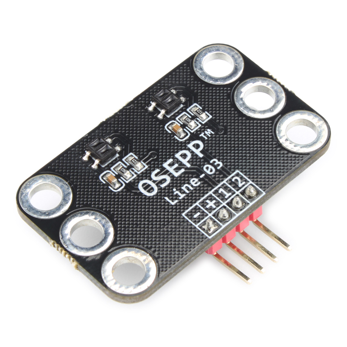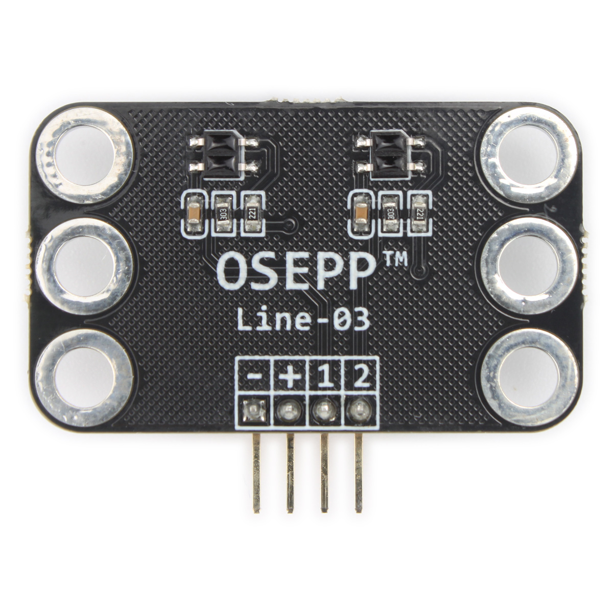 OSEPPLineTracker(Line-03),设计用于智能小车、机器人巡线、防跌落、电子围栏等应用。采用亿光ITR8307作为感应元件。贴片工艺带来小巧的尺寸,可以更灵活地安装到作品上。感应输出为模拟信号,需要接控制器的模拟输入引脚使用。