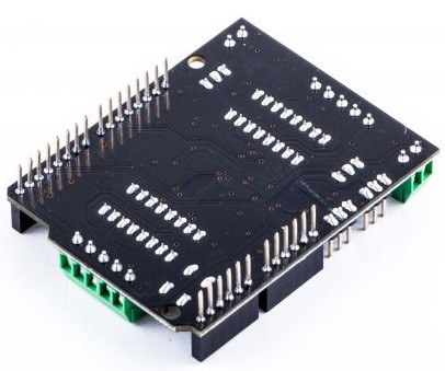 - 包括两个L293D Quad H桥芯片组,每个桥可提供0.6A(峰值为1.2A),具有热关断保护和内部反冲保护二极管。