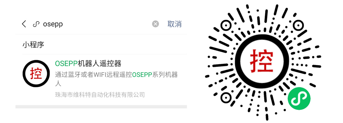 打开机器人电源,微信扫描二维码,或者搜索小程序"osepp遥控器