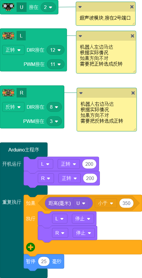 if (U.ping() < 350) {  //如果超声波检测到距离小于350mm
